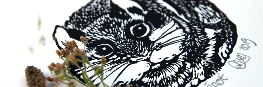 Gravure sur bois originale. Série "les animaux sortent du bois"