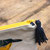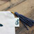 Fermeture zippée jaune avec pampille bleu denim faite à la main.