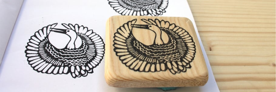 Gravé à la main dans de la gomme destinée à cet usage.