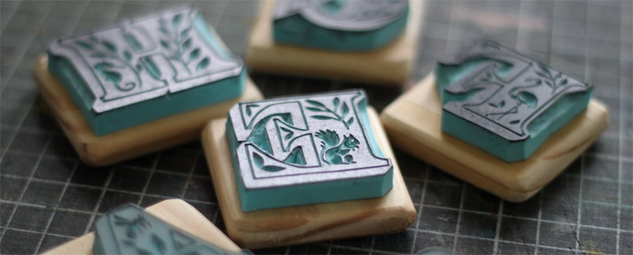 Gravé à la main dans de la gomme destinée à cet usage.