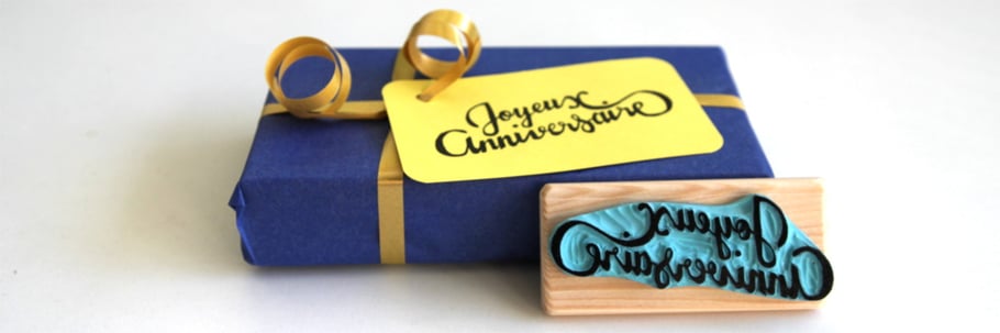 Tampon artisanal "Joyeux anniversaire".