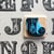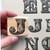 Tampon artisanal lettre J, gravé d'après un dessin original.