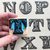 Tampon artisanal lettre T, gravé d'après un dessin original.